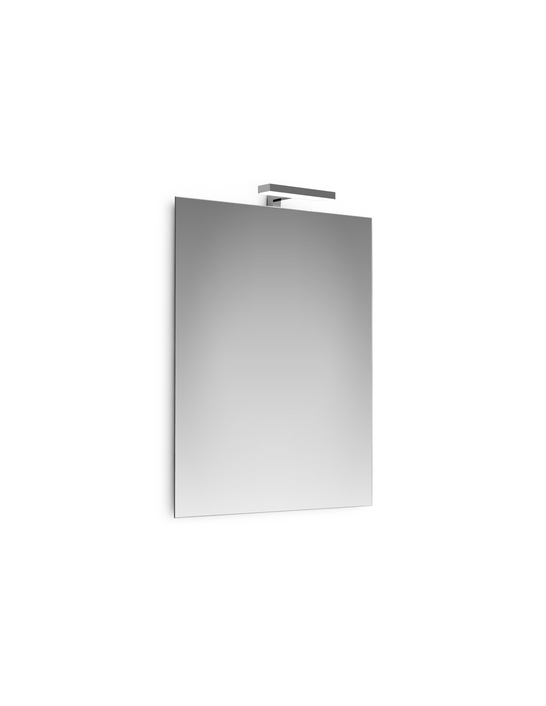 A filo lucido con placche in lamiera. La lampada led cromata da 18 cm riprende le forme squadrate e moderne dello specchio. Kit di fissaggio non incluso. Dimensioni 60 x h 80 cm