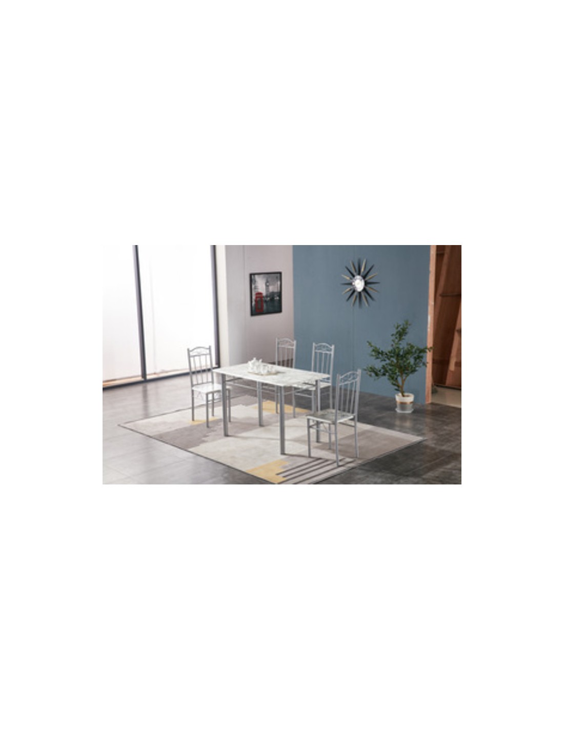 La struttura in robusto acciaio garantisce unelevata stabilit. Composta da 1 ampio piano del tavolo rettangolare in MDF effetto marmo chiaro 120 x 70 x h 75 cm e 4 comode sedie 38 x 40 x h 89 cm con sedute realizzate anchesse in MDF.