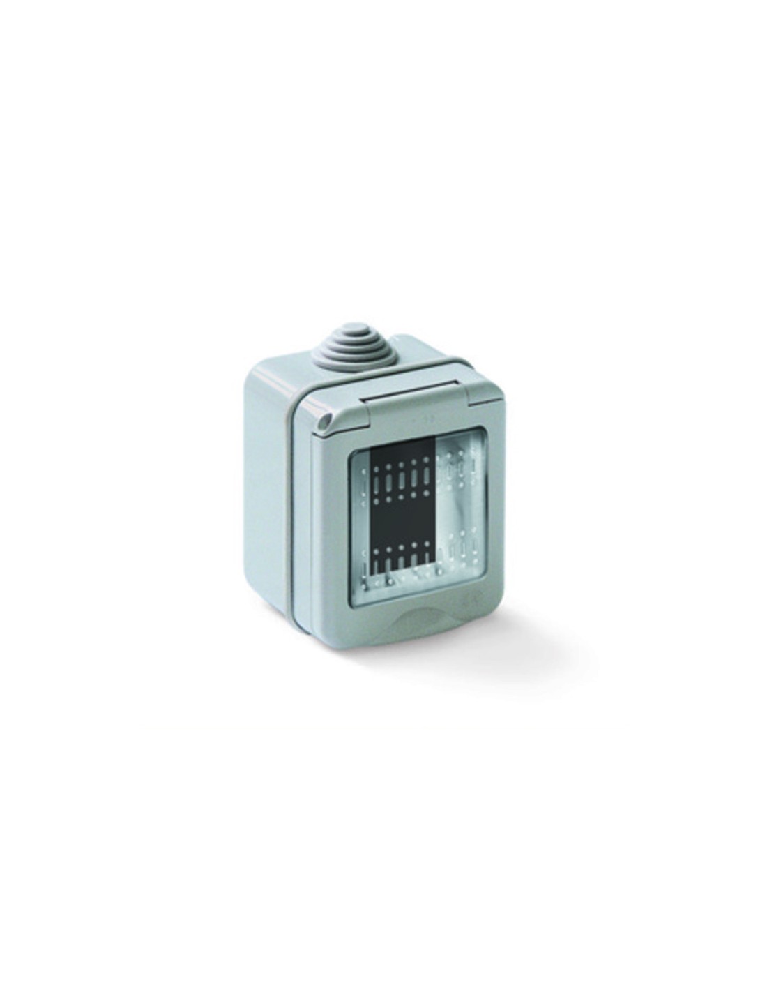Serie My Life Box System contenitore da parete. Grado di protezione IP 55. Per apparecchi tipo My Life. Predisposta per entrata tubi 20 mm. Passacavi in materilae morbido a pi circonferenze concentriche. Per apparecchi tipo Magic. Portello di protezione con interno trasparente morbido. Moduli installabili 1. Dimensioni 67x59x83 mm. Colore grigio.