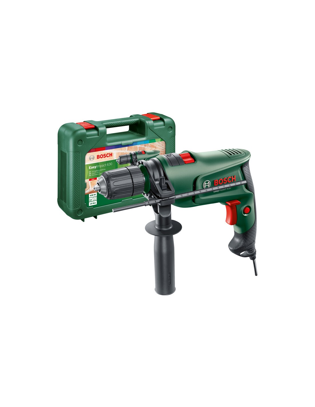 Mod. Impact 630 Kit. Potenza 630 W. Mandrino autoserrante 13 mm. Regolazione elettronica. Reversibile. Numero di giri a vuoto al minuto 50-3.000 giri/min. Numero di colpi al minuto 45.000 colpi/min. Coppia di serraggio 15 Nm. Diametro foro legno 25 mm, acciaio 10 mm, calcestruzzo 13 mm. Rivestimento antiscivolo. In dotazione Impugnatura supplementare, asta di profondita e valigetta. Dimensioni 290 x 68 x 221 mm. Peso 1,70 kg